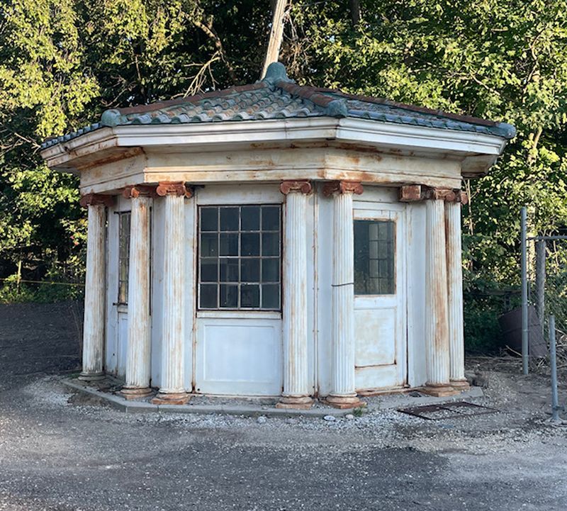 Octagon-Shaped Gas Station. Pontiac, Illinois . Circa 1920-30's. Click here for more info. Photo courtesy ohiobarns.com. Manufacturer unknown.